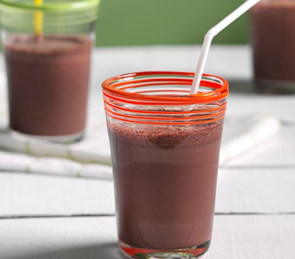 - Ponga en el vaso el helado de chocolate, el hielo, el azúcar, la leche y el cacao puro y bata 1 min/vel 7. Sirva inmediatamente en vasos con pajitas.