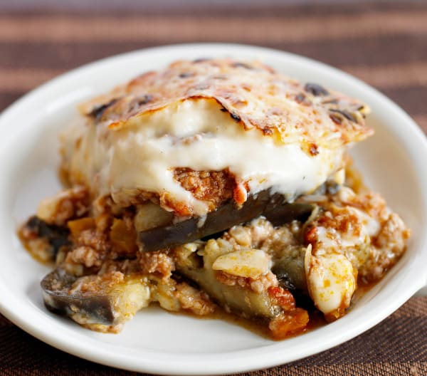La Moussaka es un plato tradicional en Grecia muy parecido a la lasaña pero con capas de berenjena en vez de pasta.