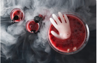 • Prepara cócteles rojos sangrientos con y sin alcohol y sírvelos con terroríficos ojos. Rellena lichis con arándanos y déjalos flotar en las bebidas.