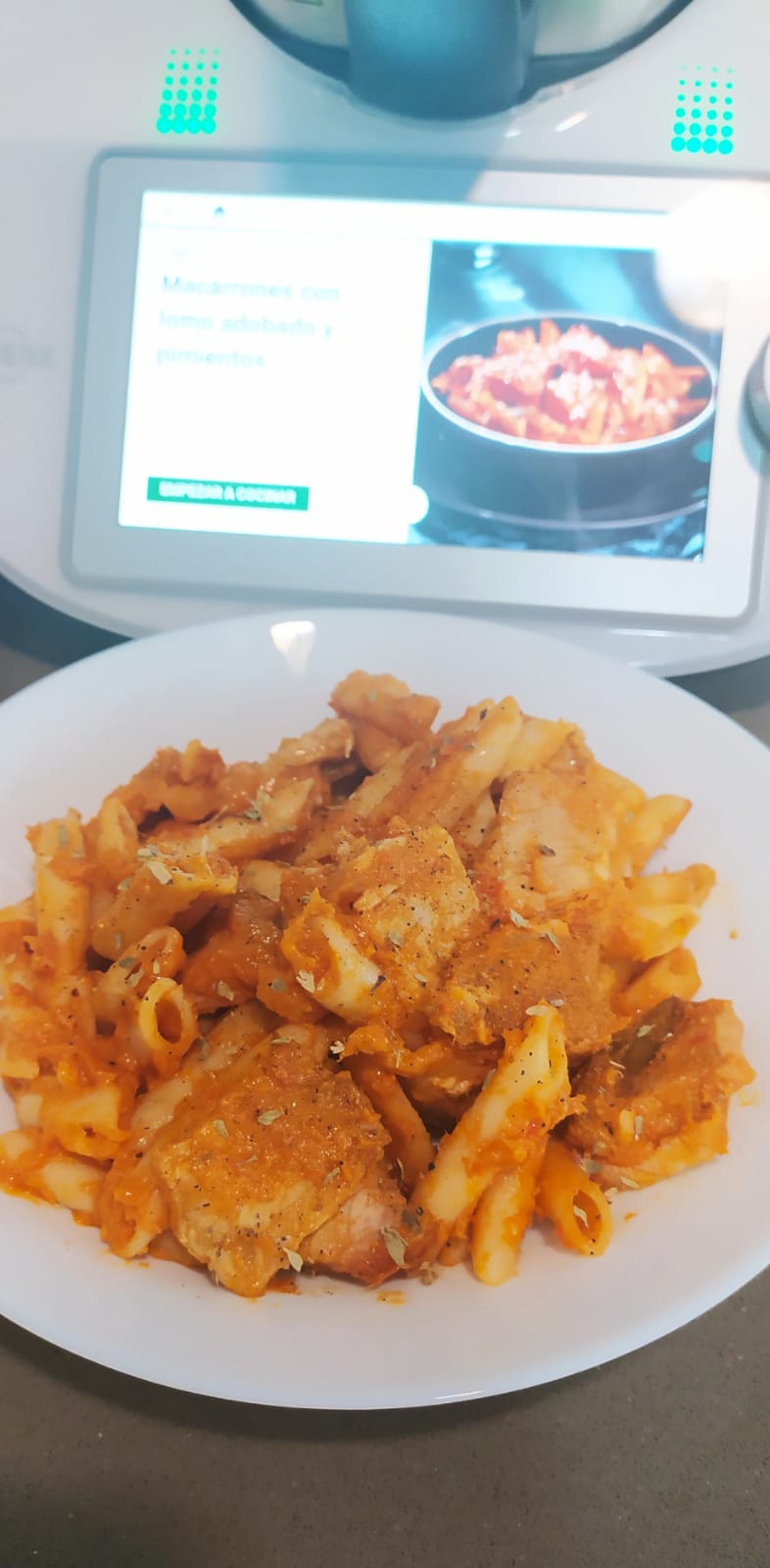 COMO PREPARAR MACARRONES CON LOMO ADOBADO Y PIMIENTOS CON THERMOMIX