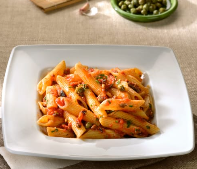• La pasta a la puttanesca es un primer plato de la cocina napolitana (a menudo se hace con espaguetis en lugar de macarrones). Ligeramente picante y muy sabroso, es un plato muy popular por sus ingredientes de bajo costo, fáciles de encontrar y típicamente mediterráneos.