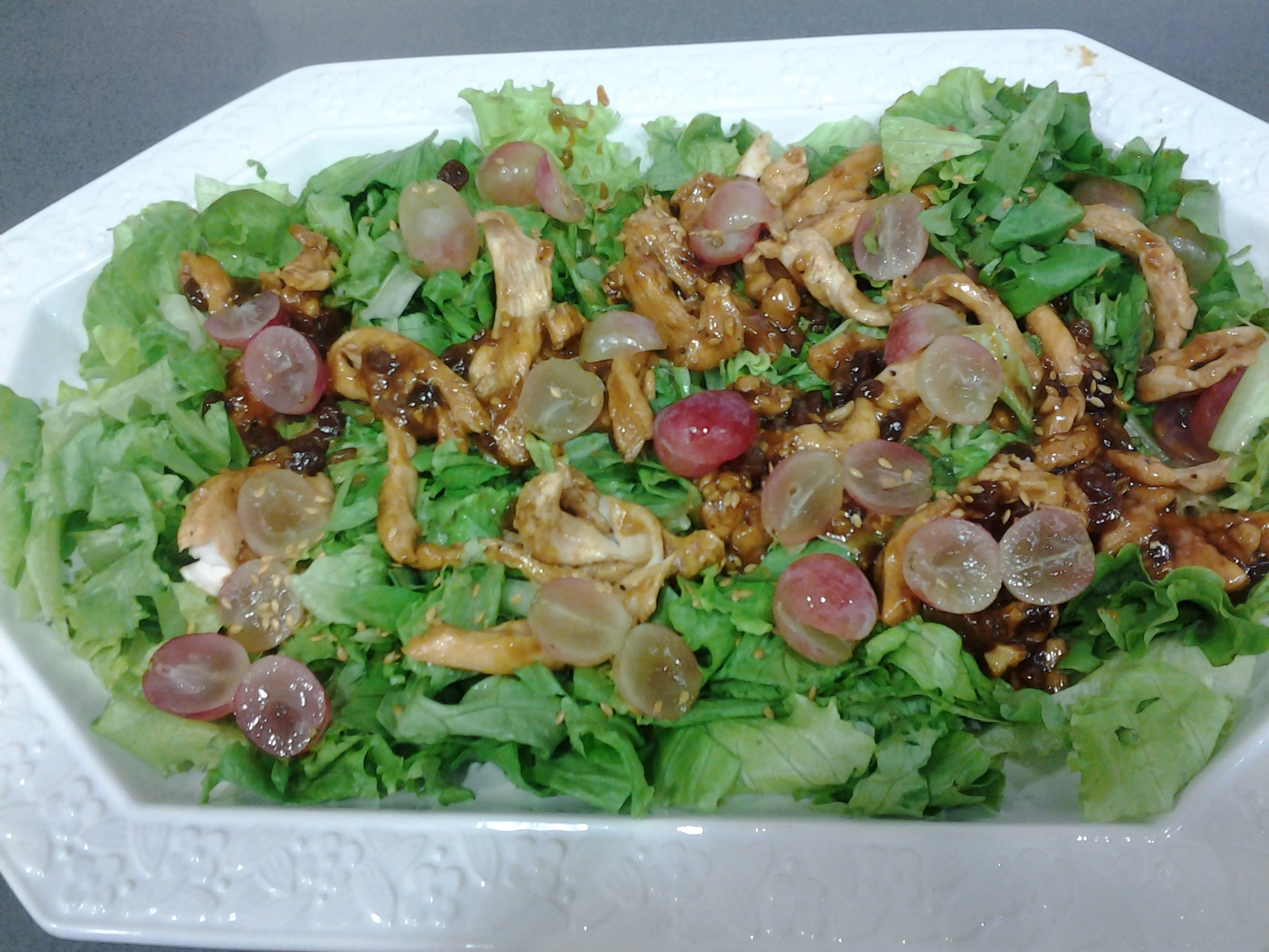 COMO PREPARAR ENSALADA CON POLLO DORADO, UVAS Y PASAS CON THERMOMIX
