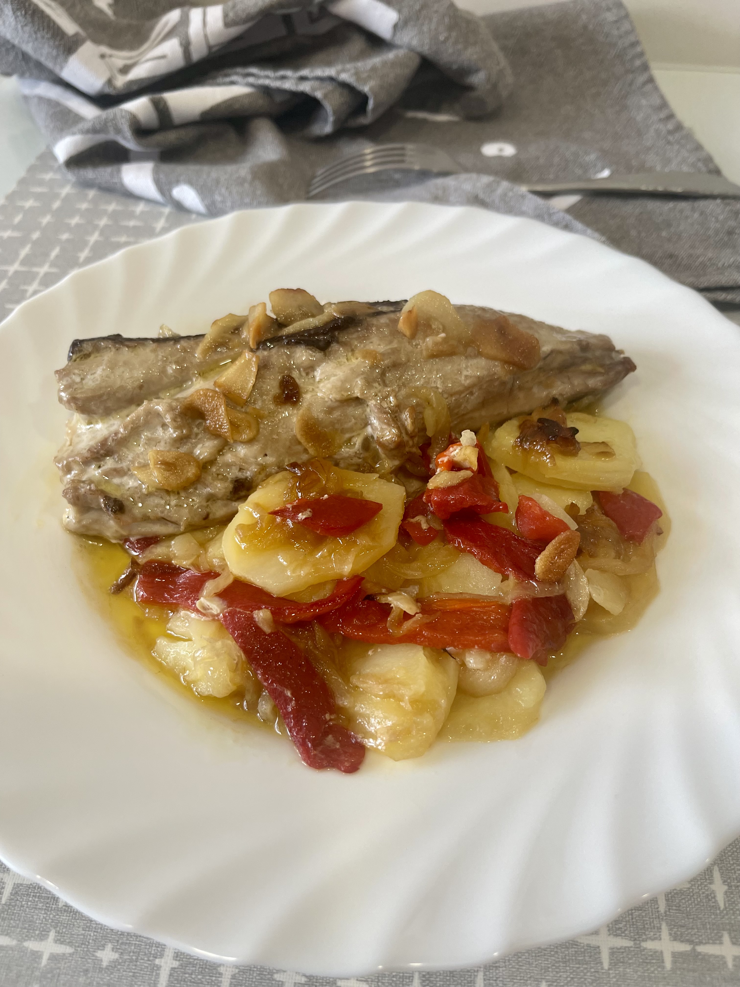 BONITO DEL NORTE AL HORNO CON PATATAS