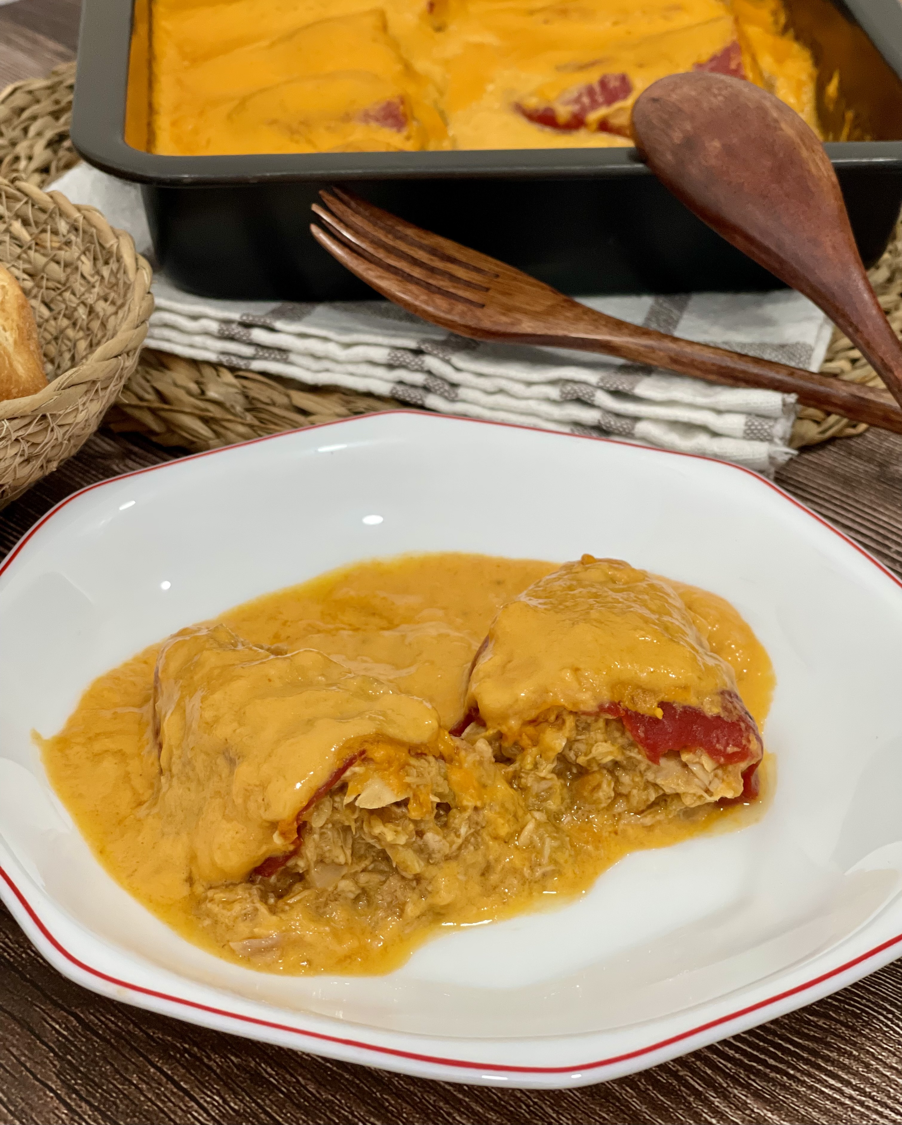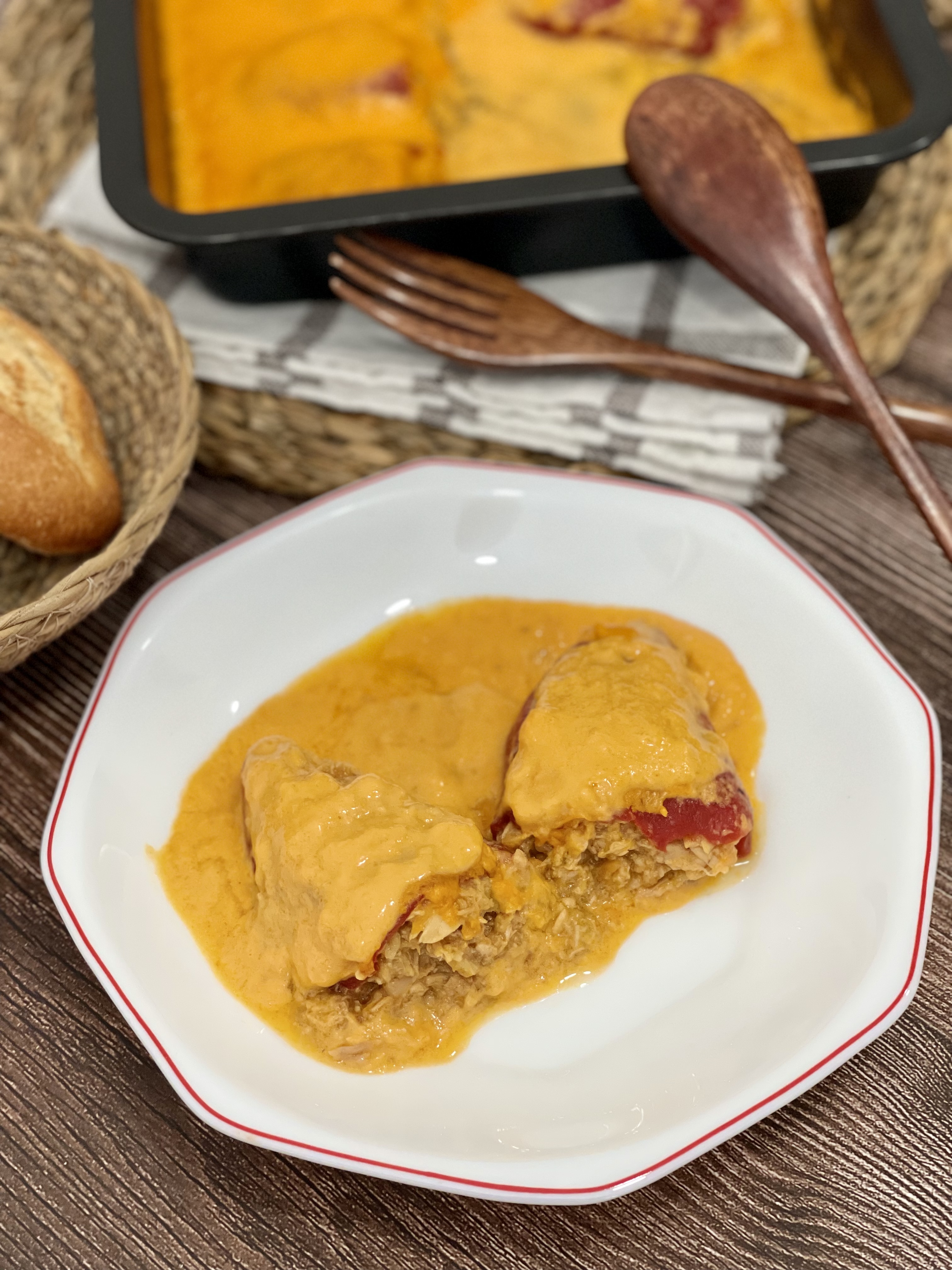 En general, los pimientos rellenos me gustan mucho, y existen muchas formas de hacerlos, aunque me decanto más por los rellenos de marisco o de bonito. Se pueden hacer con bechamel o con una salsa. Esta receta no lleva gluten, por lo que sería apta para todos.