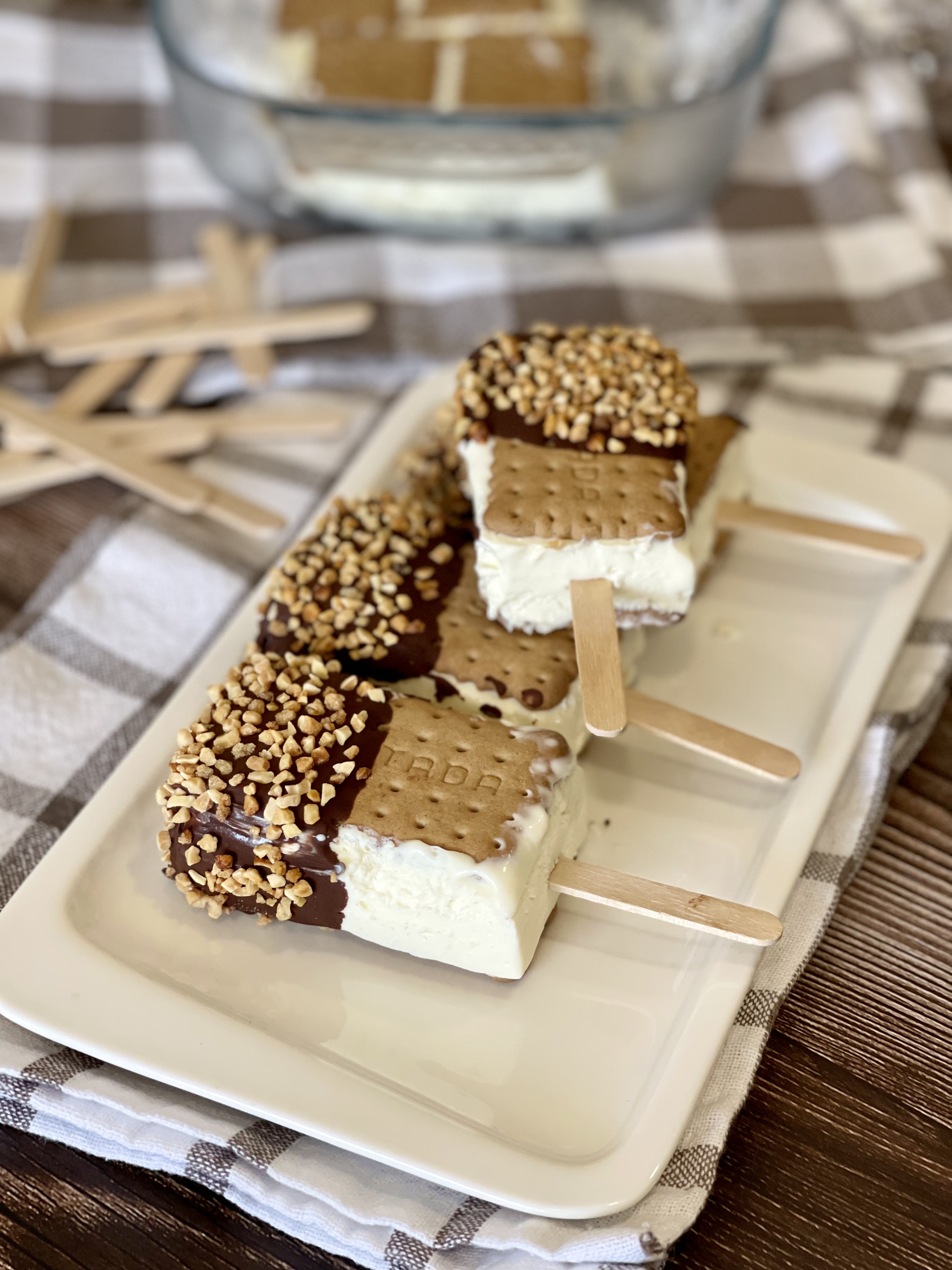 Los palos de helado podemos prescindir de ellos, con lo que nos quedaría un sandwich perfecto para comer con las manos.