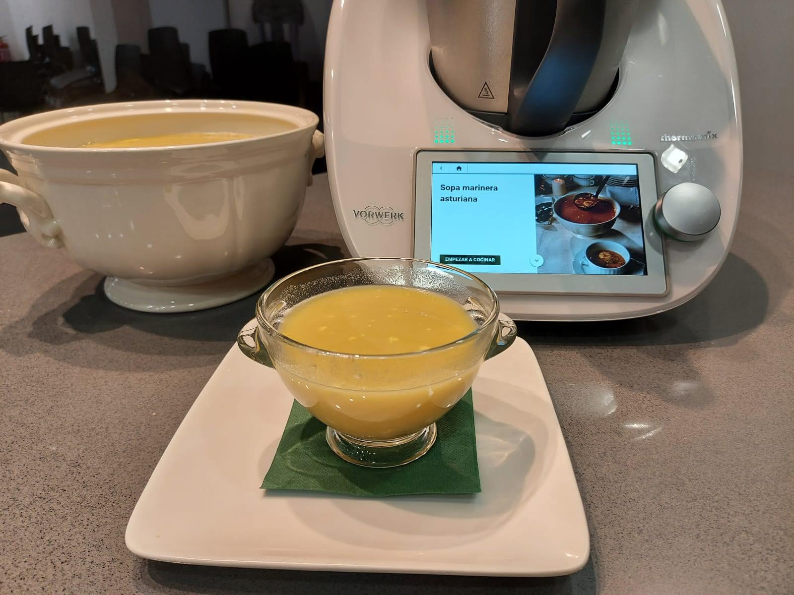 - Agregue las almejas y los langostinos y programe 3 min/100°C/vel 1. Vierta en la sopera reservada y sirva inmediatamente.