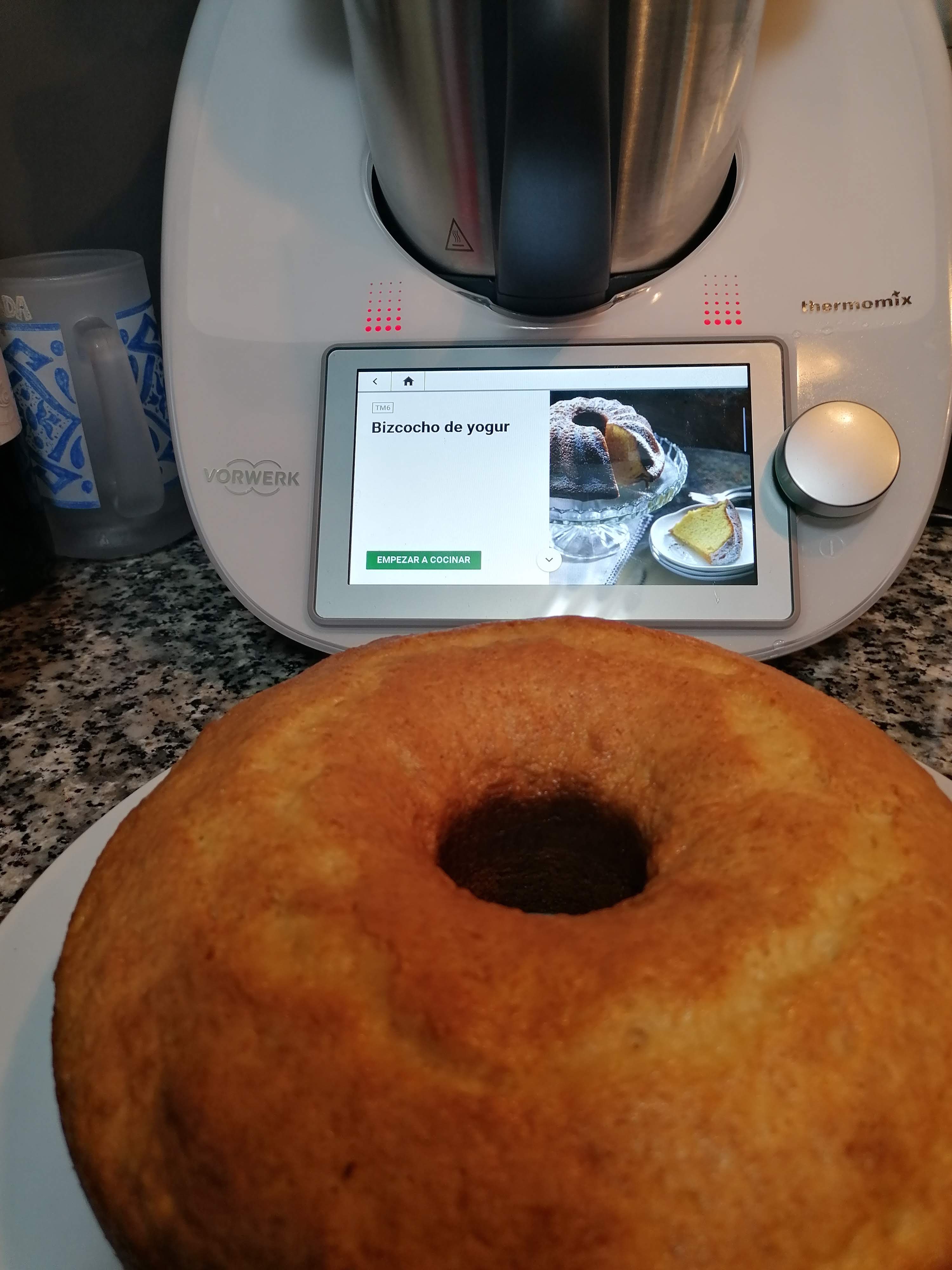 - Añada la levadura química y mezcle 15 seg/vel 5. Vierta la mezcla en el molde preparado y hornee durante 30 minutos (180°C) . Deje enfriar el bizcocho dentro del molde durante 10 minutos antes de sacarlo y ponerlo en un plato de servir donde dejarlo enfriar totalmente. Espolvoree con 30 g de azúcar glas y sirva.