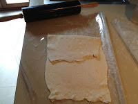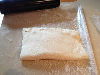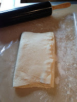 Aquí os dejo el paso a paso del hojaldre con fotos, es muy sencillo, pero ojo, las vueltas tienen que ser impares, 3, 5, 7... cuantas más vueltas más hojaldrado os quedará.